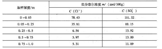 在一盐渍土地段,地表1.0m深度内分层取样,化验含盐成分如表1所示。按《岩土工程勘察规范》(GB50021—2001)计算该深度范围内取样厚度加权平均盐分比值D1=[C(Cl-)/2C(SO2-4)]并判定该盐渍土应属于( )盐渍土。 表1 含盐成分表