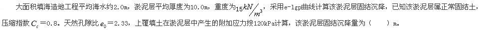某港口工程中测得淤泥性土的天然含水率为45,相对密度为2.55,塑性指数为19,该淤泥性土的为( )。