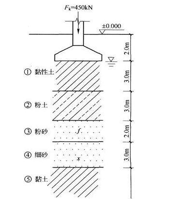 某一建筑物按抗震要求为乙类建筑,条形基础宽度b=2.0m,埋深d=2.0m,地基剖面如图4所示,基础底面下各层土的厚度、土性指标等如表1所示,荷载按地震效应组合计算,作用在基础顶面的竖向荷载标准值Fk=450kN。进行天然地基基础抗震验算时,地基土的抗震承载力是( )kPa。