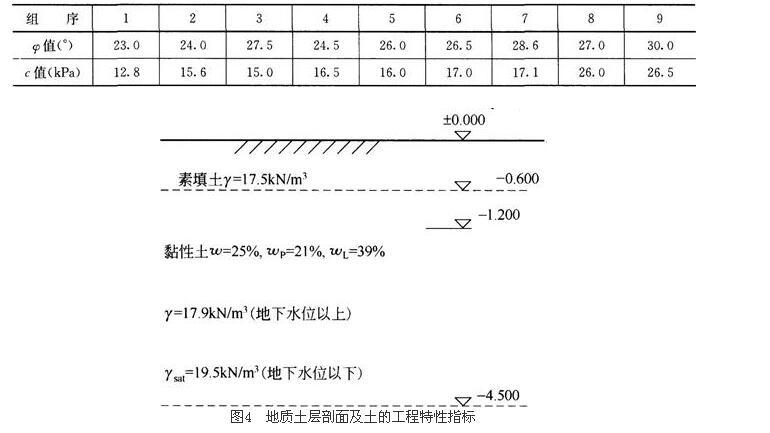 某民用建筑五层砌体承重结构,底层承重墙240厚墙体传至基础±0.000处的荷载效应Fk=200kN/m,持力土层土工实验的实验成果如表2所示。地质土层剖面及土的工程特性指标如图4所示。基础埋置深度可以选择为( )m。 表2 持力土层土工实验的实验成果
