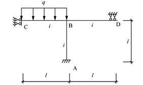 <p>用力矩分配法分析图示结构。先锁住节点 B,然后再放松,则传递到C支座的力矩为( )。 <img alt="" src
