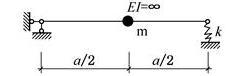 图示结构,集中质量m在刚性梁的中点,EI=∞,弹簧刚度为k,该体系自振频率为( )。