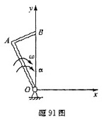 直角刚杆OAB可绕固定轴O在图示平面内转动,已知OA=40cm,AB=30cm,ω=2rad/s,α=1rad/s2,则图示瞬时,B点加速度在y方向的投影为()。 A.40 C.m/s2 B.200 C.m/s2