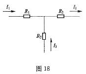 图示18电路中,I1=5 A、I2=-1 A、R1=5kΩ、R2=2kΩ、R3=3kΩ时,I3的电流为()A。