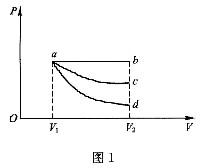 如图1所示,一定量的理想气体从体积V膨胀到V2,经历的过程分别为:a→b为等压过程,a→c为等温过程,a→d为绝热过程,其中吸热最多的过程是()