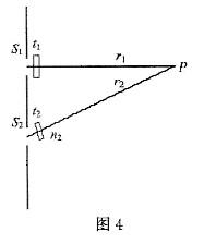 如图4所示,S1和S2是两个相干光源,它们到P点的距离分别为r1和r2。路径S1P垂直穿过一块厚度为t1,折射率为n1的介质板,路径S2P垂直穿过厚度为t2,折射率为n2的另一介质板,其余部分可看作真空,这两条路径的光程差为()