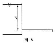 水箱中的水经管道出流,如图18所示。已知管道直径为25mm,长度为6m,作用水头H=13m,沿程阻力系数λ=0.02。管壁切应力τ0为()