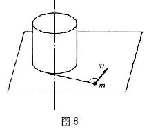半径为R的圆柱垂直地固定在水平面上,其上缠绕细绳(绳质量不计),绳端系一小球,质量为m,小球可在水平面上运动,无摩擦,如图8所示。设初始小球以速度v垂直于绳索运动,问在以后的运动过程中() (1)小球的动能是否变化? (2)小球对垂直于水平面的圆柱中心轴的动量矩是否守恒?