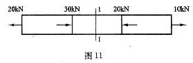如图11所示轴向拉压杆,1-1截面的轴力N的数值为()