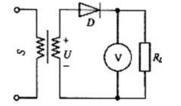 单相半波整流电路如图所示,已知变压器副边电压为U(t)=28.28sin(ωt+ψ)V,设D为理想二极管,直流电压表的读数是( )V。