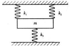 如图所示,三根弹簧的刚性系数分别为k1,k2,k3,振体的质量为m,则此系统沿铅垂方向振动的固有圆频率为( )。