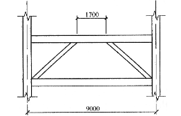假定,①轴第12层支撑的形状如图所示,框架梁截面为H600×300×12×20,Wnp=4.42×106mm3。已知消能梁段的剪力设计值为V=1190kN,又对应于消能梁段剪力设计值V的支撑组合轴力计算值Nbr,com=2000kN,支撑斜杆采用H型钢,抗震等级为二级,且满足承载力及其他构造要求。试问,支撑斜杆轴力设计值Nbr(kN)最小应取下列何值,才能满足规范要求?( )