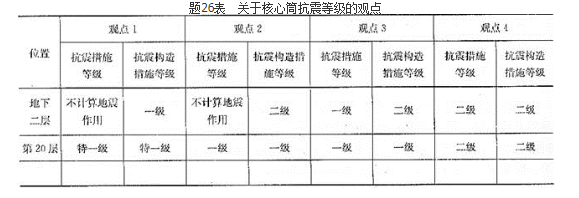 针对上述结构,钢筋混凝土核心筒地下二层和第20层的抗震等级有下列4组,如表所示。试问,哪组符合《建筑抗震设计规范》(GB50011—2010)(2016年版)及《高层建筑混凝土结构技术规程》(JGJ3—2010)的最低要求?( )