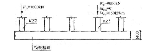 某安全等级为二级的高层建筑采用钢筋混凝土框架结构。柱截面尺寸900mm×900mm,如图所示。柱采用平板式筏基,板厚1.4m,均匀地基。荷载效应由永久荷载控制。