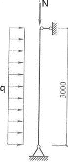 一正方形截面木柱,木柱截面尺寸为200mm×200mm,选用东北落叶松TC17B制作,正常环境下设计使用年限为50年。计算简图如题39~40图所示,上、下支座节点处设有防止其侧向位移和侧倾的侧向支撑。 假定,侧向荷载设计值q=1.2kN/m。试问,当按强度验算时,其轴向压力设计值N(kN)的最大值,与下列何项数值最为接近?( ) 提示:①不考虑构件自重;②构件初始偏心距e0=0。