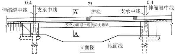 某高速公路立交匝道桥为一孔25.8m预应力混凝土现浇简支箱梁,桥梁全宽9m,桥面宽8m,梁计算跨径25m,冲击系数0.222,不计偏载系数,梁自重及桥面铺装等恒载作用按154.3kN/m计,如题图,试问:桥梁跨中弯矩基本组合值(kN·m),与下列何项数值最为接近( )