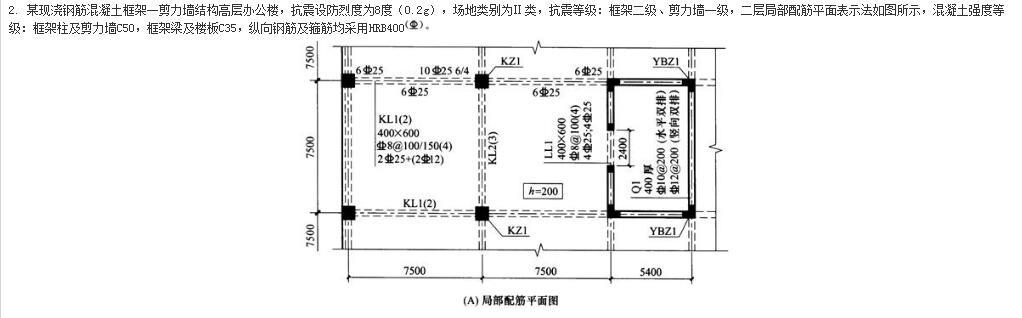 已知,框架梁中间支座截面有效高度h0=530mm,试问,图 (A)框架梁KL1(2)配筋有几处违反规范的抗震构造要求,并简述理由。( ) 提示:x/h0