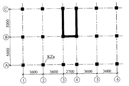 若底层横向水平地震剪力设计值V=2000kN,其他条件同上,试问,由横向地震剪力产生的框架柱KZa柱顶弯矩设计值(kN*m),应与下列何项数值最为接近?