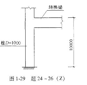 某现浇混凝土框架-剪力墙结构,角柱为穿层柱,柱顶支承托柱转换梁,如图1-29所示。该穿层柱抗震等级为一级,实际高度L=10m,考虑柱端约束条件的计算长度系数μ=1.3,采用钢管混凝土柱,钢管钢材采用Q345