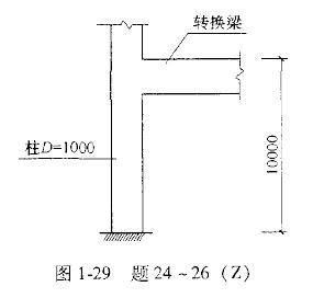 某现浇混凝土框架-剪力墙结构,角柱为穿层柱,柱顶支承托柱转换梁,如图1-29所示。该穿层柱抗震等级为一级,实际高度L=10m,考虑柱端约束条件的计算长度系数μ=1.3,采用钢管混凝土柱,钢管钢材采用Q345