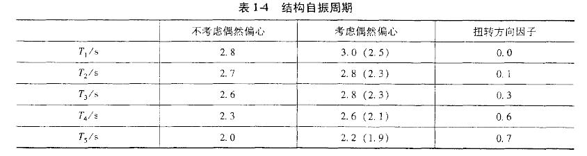 某平面不规则的现浇钢筋混凝土高层结构,整体分析时采用刚性楼盖假定计算,结构自振周期见表1-4。试问,对结构扭转不规则判断时,扭转为主的第一自振周期Tt与平动为主的第一自振周期TI,之比值最接近下列何项数值?