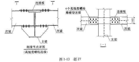 假定,悬挑次梁与主梁的焊接连接改为高强度螺栓摩擦型连接,次梁上翼缘与连接板每侧各采用6个高强度螺栓,其刚接节点如图1-13所示。高强度螺栓的性能等级为10.9级,连接处构件接触面采用喷砂(丸)处理。试问,次梁上翼缘处连接所需高强度螺栓的最小规格应为下列何项?