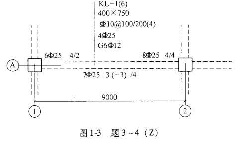 某8度区的框架结构办公楼,框架梁混凝土强度等级为C35,均采用HRB400钢筋。框架的抗震等级为一级。?轴框架梁的配筋平面表示法如图1-3所示,as=as'=60mm。①轴的柱为边柱,框架柱截面b×h=800mm×800mm,定位轴线均与梁、柱中心线重合。