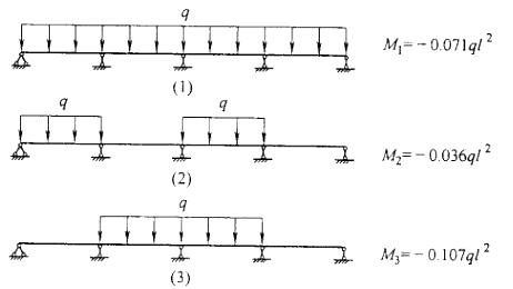 C.②本题需要考虑可变荷载不利分布,等跨梁在不同荷载分布作用下,支座C的弯矩计算公式分别为: