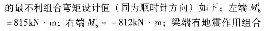 假定,地面以上第2层(转换层)核心筒的抗震等级为二级,核心筒中某连梁截面尺寸为400mmx1200mm,净跨ln=1200mm,如下图所示。连梁的混凝土强度等级为C50(fc=23.1N/mm2,ft=1.89N/mm2),连梁梁端有地震作用组合