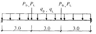A.框架梁KL3的截面尺寸为400mmx700mm,计算简图近似如下图所示。作用在KL3上 的均布静荷载、均布活荷载标准值q