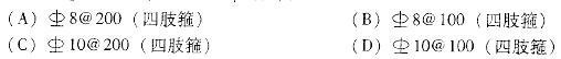 qL分别为180kN、60kN,试问,支座截面处梁的箍筋配置下列何项较为合适?提示: