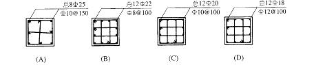 B.假定,二层中柱KZ2截面为600mmx600mm,剪跨比大于2,轴压比为0.6,纵筋和箍筋均采用HRB335级钢筋,箍筋采用普通复合箍。试问,下列何项柱加密区配筋符合《建筑抗震设计规范》(G50011—2010)的要求?