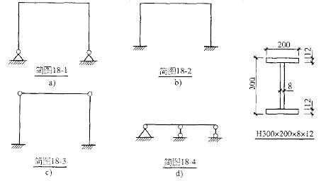 不直接承受动力荷载且钢材的各项性能满足塑性设计要求的下列钢结构:Ⅰ.符合计算简图2-7a,材料采用Q345钢,截面均采用焊接H型钢H300x200x8x12;Ⅱ.符合计算简图2-7b,材料采用Q345钢,截面均采用焊接H型钢H300x200x8xl2;Ⅲ.符合计算简图2-7c,材料采用Q235钢,截面均采用焊接H型钢H300x200x8x12;Ⅳ.符合计算筒图2-7d,材料采用Q235钢,截面均采用焊接H型钢H300x200x8x12。