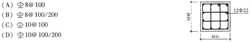 假设,某框架角柱截面尺寸及配筋形式如下图所示,混凝土强度等级为C30,箍筋采用HRB335钢筋,纵筋混凝土保护层厚度c=40mm。该柱地震作用组合的轴力设计值N=3603kN。试问,以下何项箍筋配置相对合理?提示:①假定对应于抗震构造措施的框架抗震等级为二级;②按《混凝土结构设计规范》(GB50010—2010)作答。