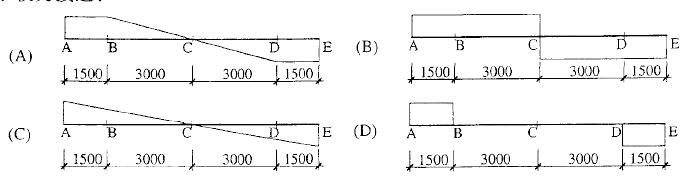 钢筋混凝土框架结构多层办公楼局部平面布置如下图所示(均为办公室),梁、板、柱混凝土强度等级均为C30,梁、柱纵向钢筋HRB400钢筋,楼板纵向钢筋及梁、柱箍筋为HRB335钢筋。 1.假设,雨篷梁KL1与柱刚接。试问,在雨篷荷载作用下,梁KL1的扭矩图与下列何项图示较为接近?