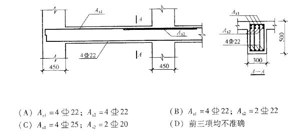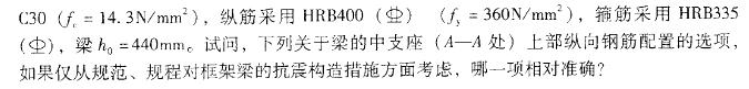 <p>某框架结构抗震等级为一级,框架梁局部配筋图如图所示。梁混凝土强度等级 <img alt="" src="https://