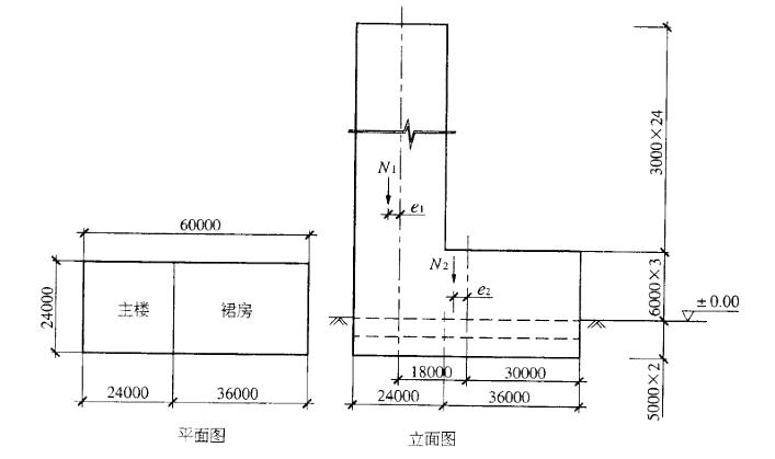某大底盘单塔楼高层建筑,主楼为钢筋混凝土框架-核心筒,裙房为混凝土框架-剪力墙结构,主楼与裙楼连为整体,如图所示。抗震设防烈度7度,建筑抗震设防类别为丙类,设计基本地震加速度为0.15g,场地III类,采用桩按形基础。