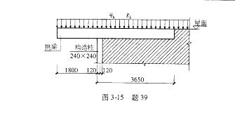 某多层砌体结构房屋,顶层钢筋混凝土挑梁置于丁字形(带翼墙)截面的墙体上,端部设有构造柱,如图3-15所示;挑梁截面bxhb=240mmx450mm,墙体厚度均为240mm。屋面板传给挑梁的恒荷载及挑梁自重标准值为=27kN/m,不上人屋面,活荷载标准值为=3.5kN/m。试问,该挑梁的最大弯矩设计值(kN*m),与下列何项数值最为接近?