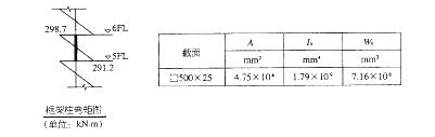 框架柱截面为□500×25箱形柱,按单向弯矩计算时,弯矩设计值见框架柱弯矩图,轴压力设计值N=2693.7kN,在进行弯矩作用平面外的稳定性计算时,构件以应力形式达的稳定性计算数值(N/mm2)与下列何项数值最为接近?