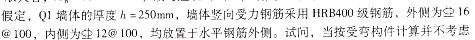 某多层现浇钢筋混凝土结构,设两层地下车库,局部地下一层外墙内移,如图3-5所示。已知:室内环境类别为一类,室外环境类别为二b类,混凝土强度等级均为C30。 受压钢筋作用时,该墙体下端截面每米宽的受弯承载力设计值M(kN*m),与下列何项数值最为接近? 提示:1.按《混凝土结构设计规范》(GB50010—2002)作答; 2.纵向受力钢筋的混凝土保护层厚度取最小值。