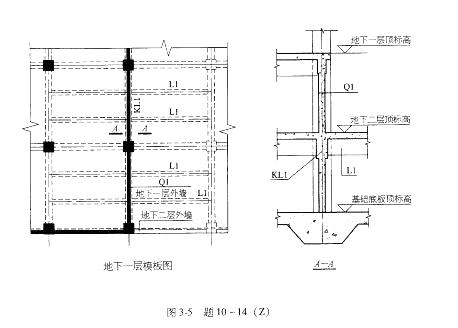 某多层现浇钢筋混凝土结构,设两层地下车库,局部地下一层外墙内移,如图3-5所示。已知:室内环境类别为一类,室外环境类别为二b类,混凝土强度等级均为C30。