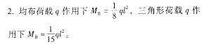 假定,地下一层外墙Q1简化为上端铰接、下端刚接的受弯构件进行计算,如图3-6所示。取每延米宽为计算单元,由土压力产生的均布荷载标准值glk=10kN/m,由土压力产生的三角形荷载标准值g2k=33kN/m,由地面活荷载产生的均布荷载标准值qk=4kN/m。试问,该墙体下端截面支座弯矩设计值MB(kN*m)与下列何项数值最为接近?