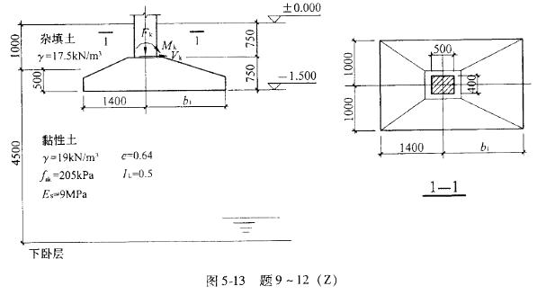 某柱下扩展锥形基础,柱截面尺寸为0.4m×0.5m,基础尺寸、埋深及地基条件见图5-13。基础及其上土的加权平均重度取20kN/m3。 假定黏性土层的下卧层为基岩。假定基础只受轴心荷载作用,且b1为1.4m;荷载效应准永久组合时,基底的附加压力值po为150kP。试问,当基础无相邻荷载影响时,基础中心计算的地基最终变形量s(mm),最接近于下列何项数值? 提示:地基变形计算深度取至基岩顶面。
