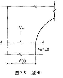 一砖拱端部窗间墙宽度600mm,墙厚240mm,采用MU10级烧结普通砖和M7.5级水泥砂浆砌筑,砌体施工质量控制等级为B级,如下图所示。作用在拱支座端部A—A截面由永久荷载设计值产生的纵向力Nu=40kN。试问,该端部截面水平受剪承载力设计值(kN),与下列何项数值最为接近?