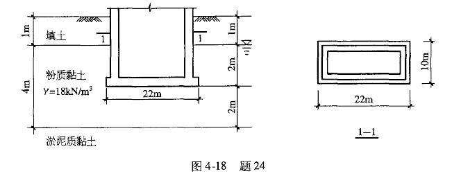 某钢筋混凝土筏形基础,基础尺寸、埋深及地基条件如图4-18所示。计算土的自重应力时,基础底面以上土的加权平均重度为10kN/m3;游泥质黏土层为软弱下卧层。已知淤泥质黏土层顶面经深度修正后的地基承载力特征值为130kPa,试问,相应于荷载效应标准组合时,基础底面处的平均压力值pk(kPa),必须小于下列何项数值才能满足软弱下卧层的强度要求?