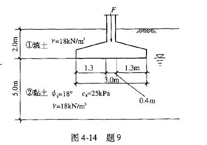 某墙下条形基础,宽度=3m,基础剖面、埋深条件及土层分布如图4-14所示。试问,在荷载无偏心且地基变形满足要求的情况下,由土的抗剪强度指标确定的地基承载力特征值(kPa),与下列何项数值最为接近?