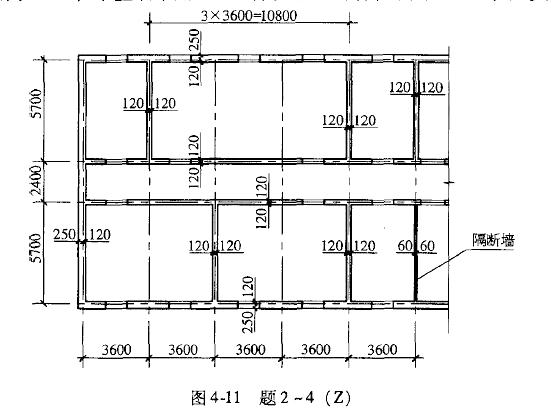 某四层砌体结构房屋,平面尺寸如图4-11所示,采用预制钢筋混凝土楼盖。外墙厚度370mm,承重内墙厚度240mm,隔断墙厚度120mm,底层墙高为3.8m(墙底算至基础顶面),隔断墙高2.9m,承重墙采用M5混合砂浆、隔断墙采用M2.5水泥砂浆砌筑。 试问,底层承重内横墙考虑门窗洞口影响修正后的允许高厚比,与下列何项数值最为接近?