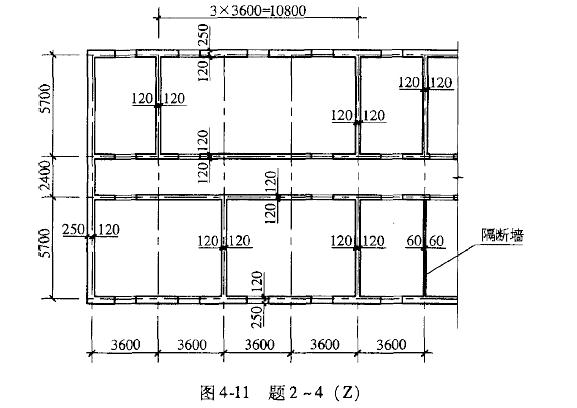 某四层砌体结构房屋,平面尺寸如图4-11所示,采用预制钢筋混凝土楼盖。外墙厚度370mm,承重内墙厚度240mm,隔断墙厚度120mm,底层墙高为3.8m(墙底算至基础顶面),隔断墙高2.9m,承重墙采用M5混合砂浆、隔断墙采用M2.5水泥砂浆砌筑。 试问,底层三开间处外纵墙的高厚比β,与下列何项数值最为接近?