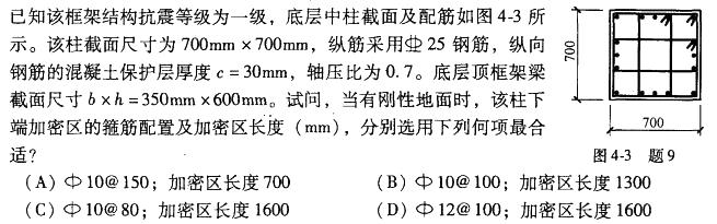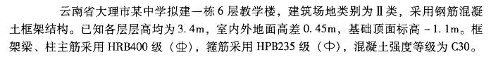 <p>某现浇钢筋混凝土多层框架结构房屋,抗震设计烈度为9度,抗震等级为一级;梁柱混凝土强度等级为C30,纵筋均采用HRB400级