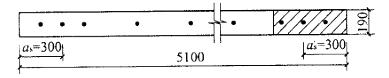 某多层配筋砌块剪力墙房屋,总高度26m,抗震设防烈度为-8度,设计基本地震加速度值为0.20g。其中某剪力墙长度5.1m,墙体厚度为190mm,如图所示。考虑地震作用组合的墙体计算截面的弯矩设计值M=500kN*m,轴力设计值N=1300kN,剪力设计值V=180kN。墙体采用单排孔混凝土空心砌块对孔砌筑,砌体施工质量控制等级为B级。 剪力墙底部加强部位的截面组合剪力设计值Vw(kN),与下列何项数值最为接近?